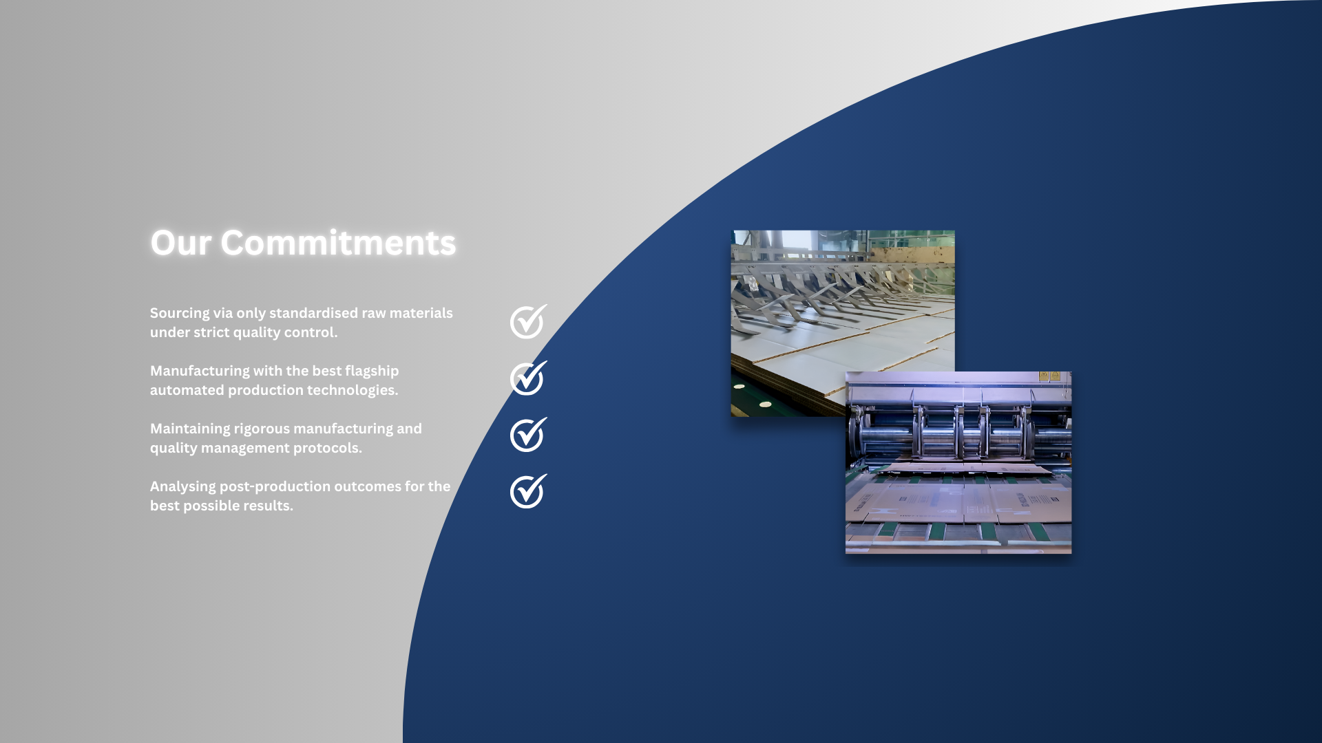 Unlike our competitors, we use our technological advantage to ensure the most efficient, high-volume, and affordable production possible. We further commit to delivering competitively priced, sustainable packaging by manufacturing and sourcing materials; responsibly within environmentally manners.